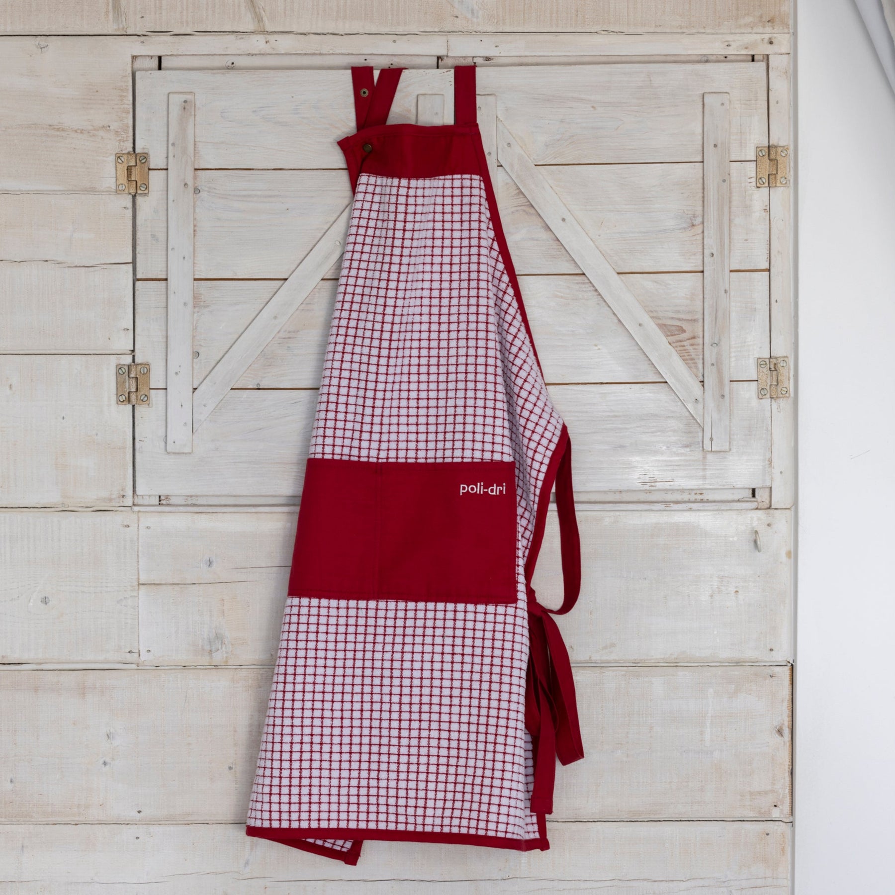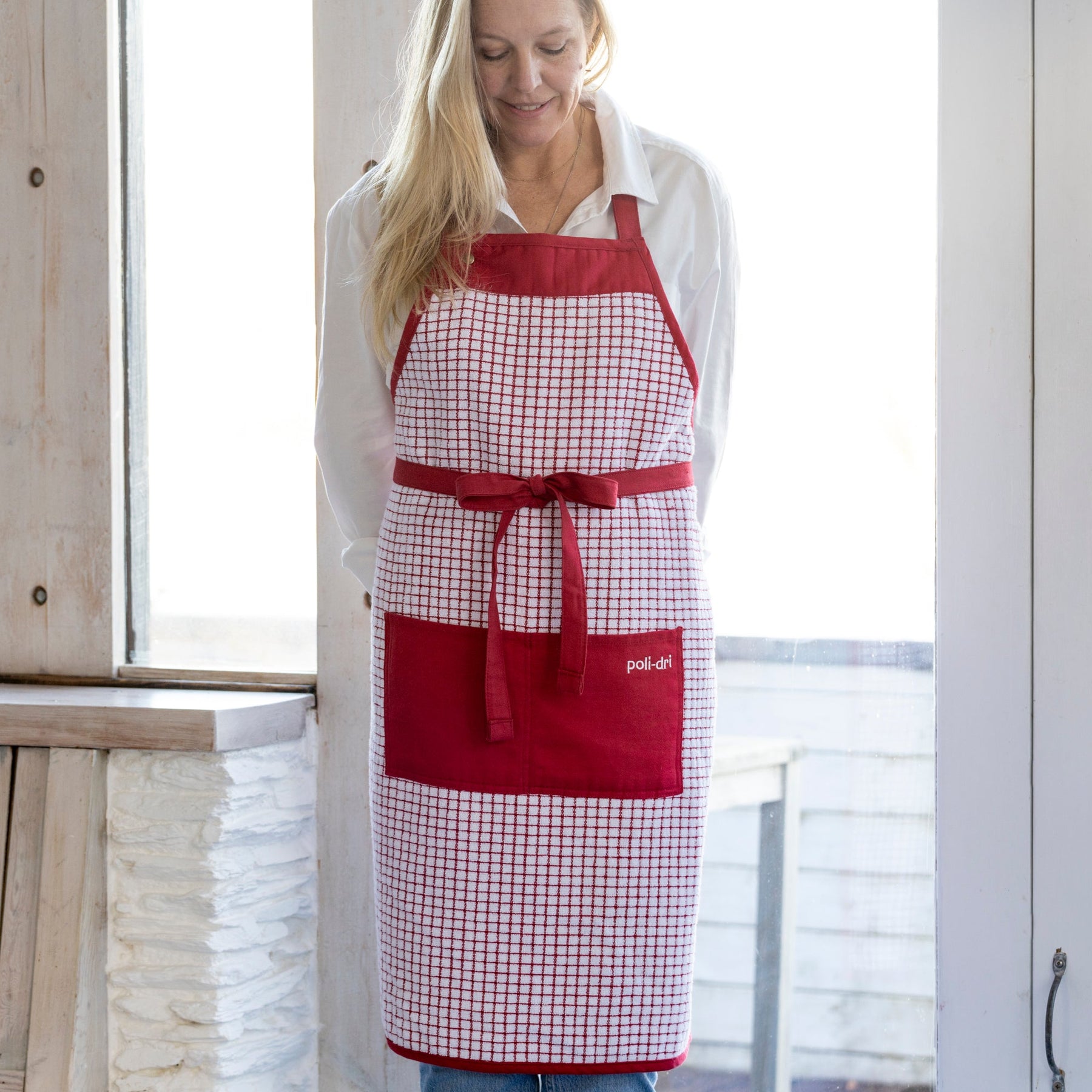 Keep your clothes free of baking splashes and cooking spills with the new attractive poli-dri chef's apron. With a large front halved pocket for all your bits and pieces, and generous waist ties that draw to your front to make it easy to put on.