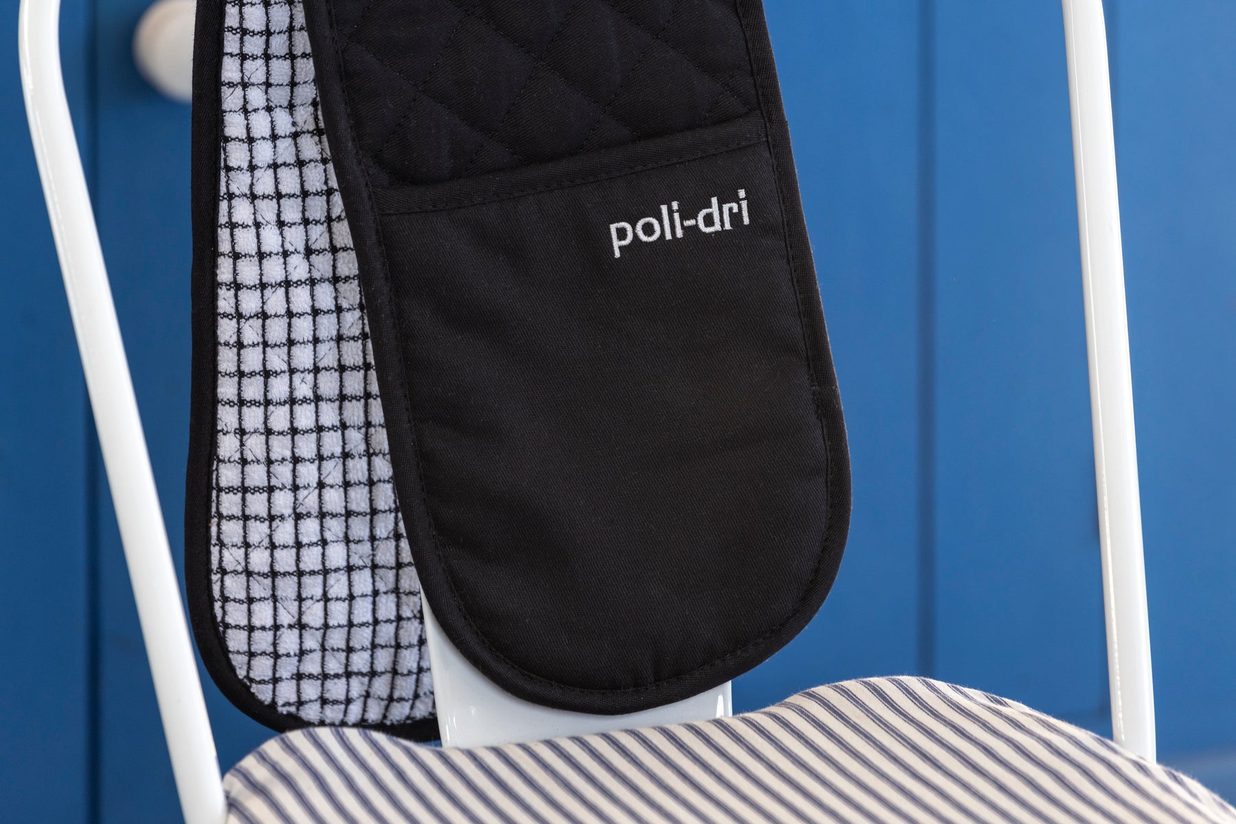 From Sunday roasts to weekday bakes, keep your hands safe with the traditional Poli-Dri double oven glove. Designed for comfort and protection, they have a generous, heavy quilted filling and feature the distinctive soft terry fabric in black.