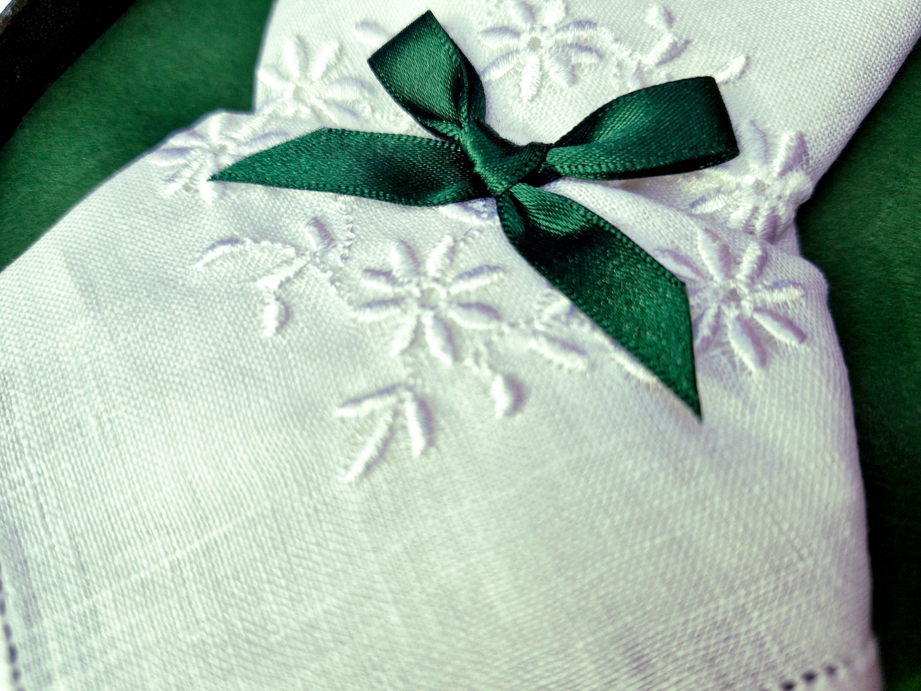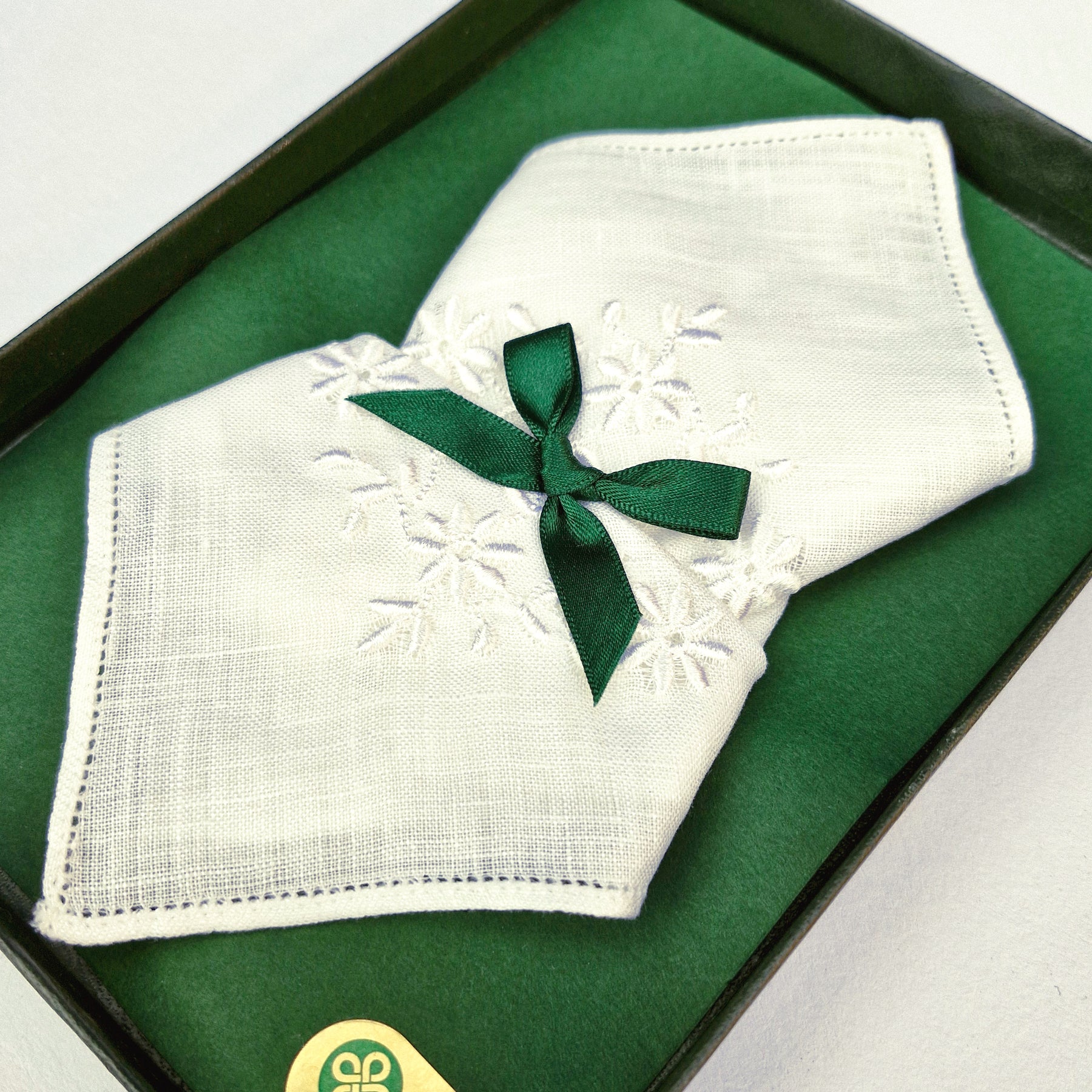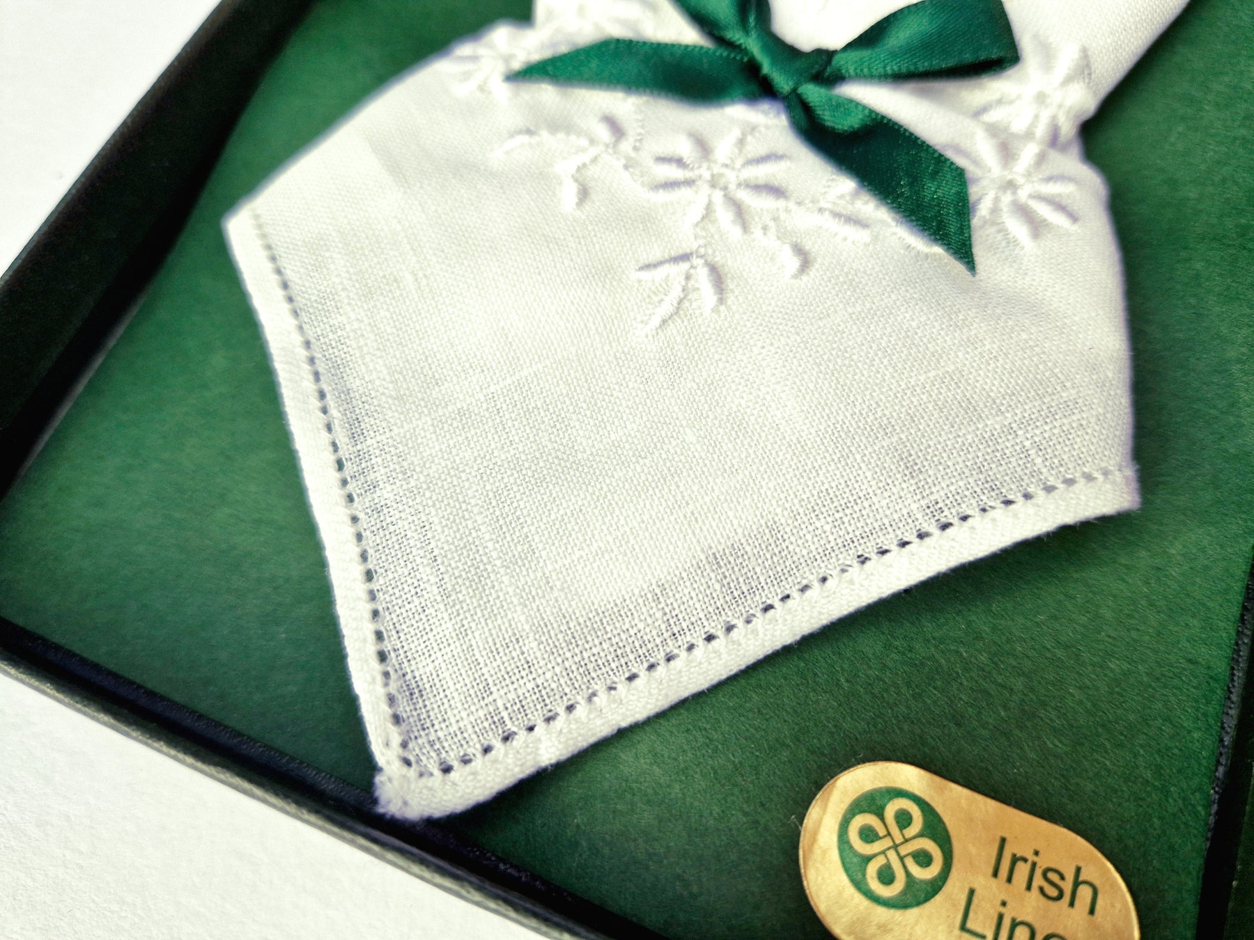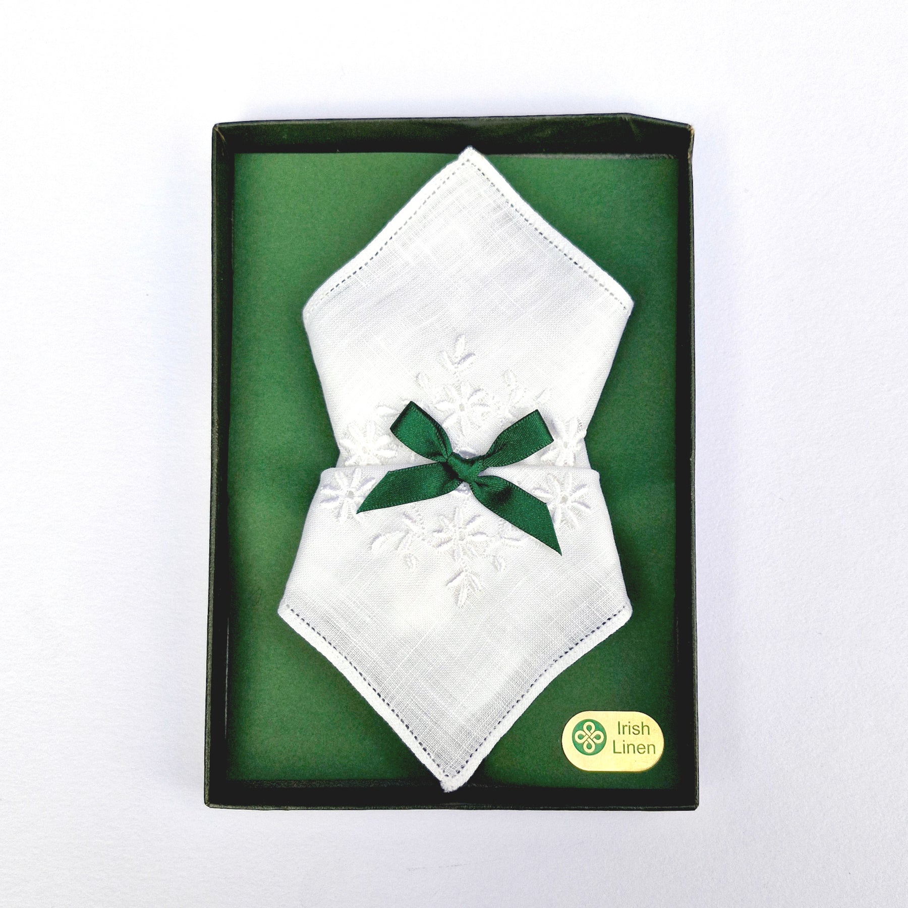 This elegant set of ladies' handkerchiefs is crafted from pure Irish linen and finished with a delicate hemstitch and beautiful white floral embroidery.