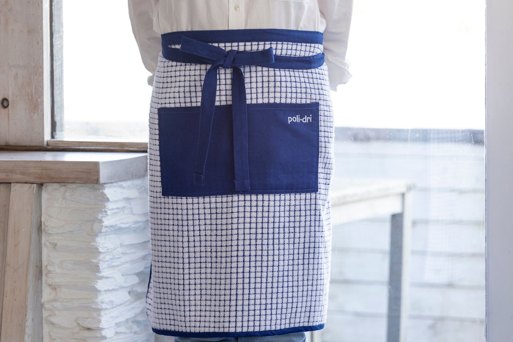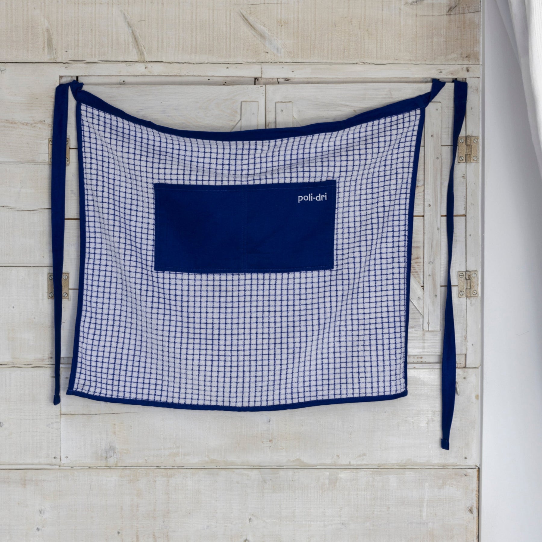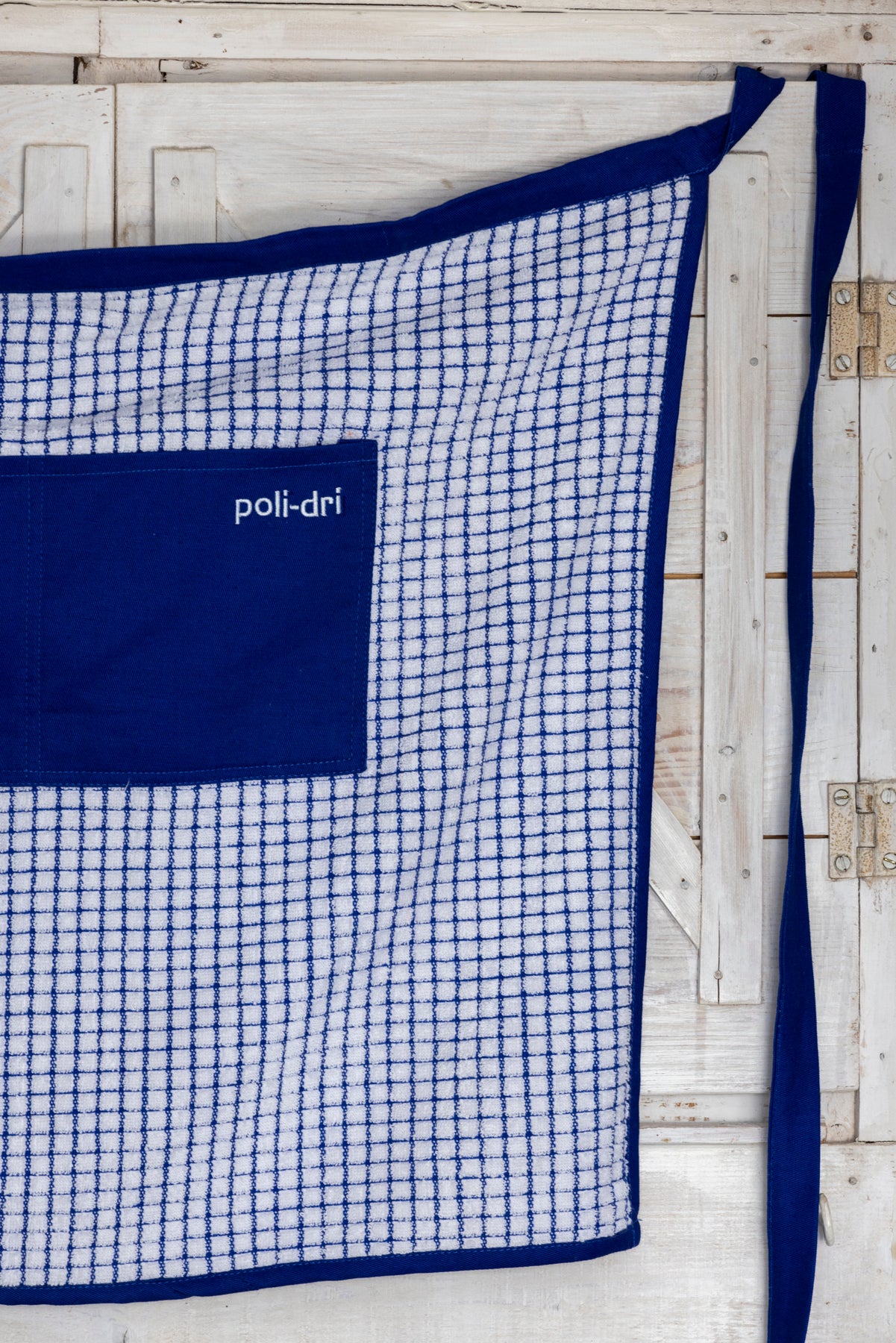 Crafted from the distinctive poli-dri blue 100% natural cotton and paired with matching cotton canvas, this apron combines absorbency with a lustrous finish.  Fully washable for easy care.